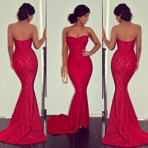 Sweetheart Lace Prom Dress, Cheap Hot Red Prom Dress with Floral Lace, Sexy Mermaid Sleeveless 2017 Prom Dress