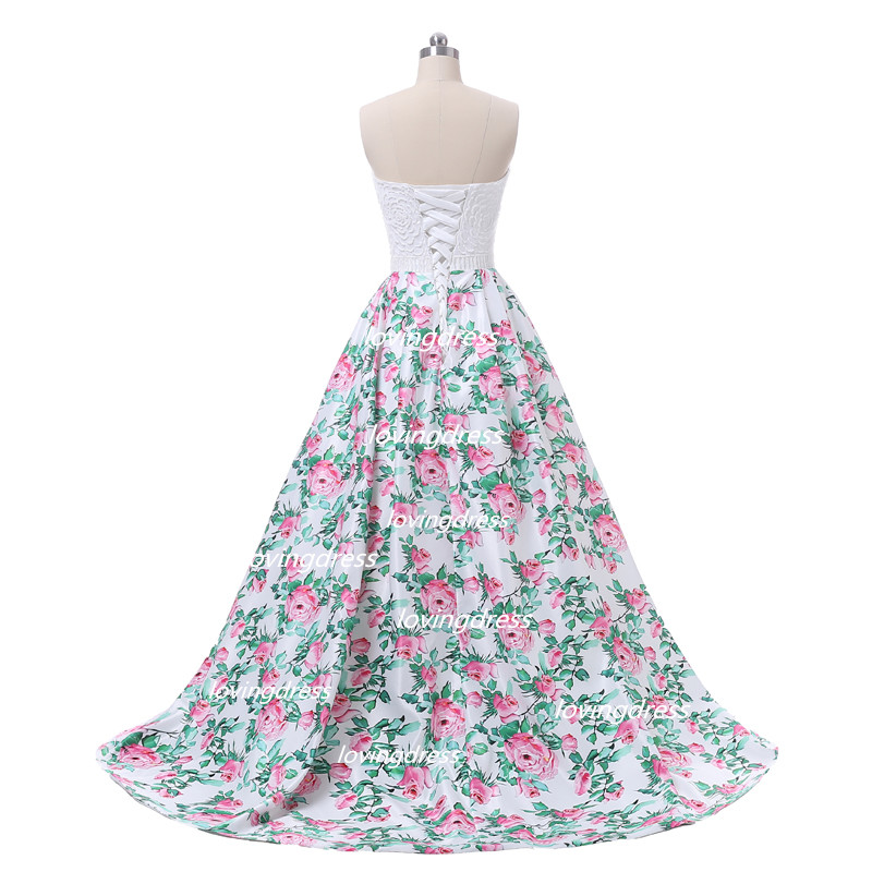 Floral print prom dress,A line prom dress,Sweetheart Prom Dress,Ball Gown Dress
