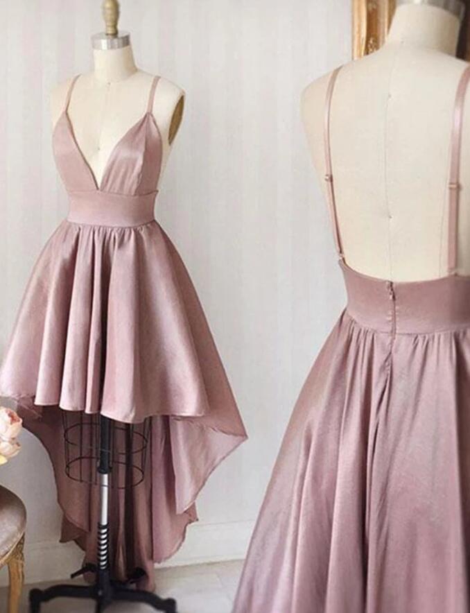Spaghetti Straps Pink Sleeveless V Neck Short Prom Dresses