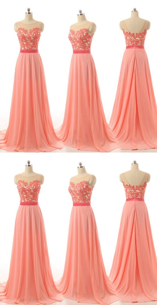 Peach bridesmaid dresses, lace bridesmaid dresses, custom bridesmaid dresses, cheap bridesmaid dresses, chiffon bridesmaid dress