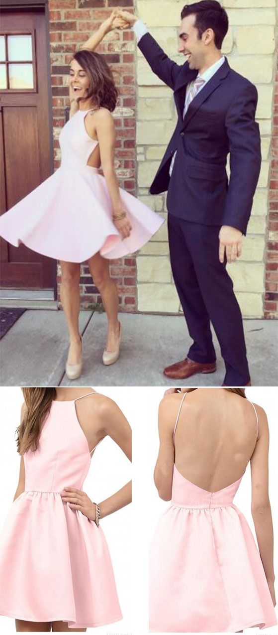 Simple Homecoming Dress,Open back Spaghetti Straps Homecoming Dress,2017 homecoming dress, Graduation Dress,short prom dress