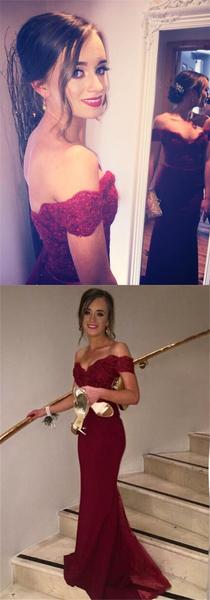 Lace Mermaid prom dresses, off shoulder prom dresses, Lace prom dresses, Prom dresses 2017,Cheap Long Prom Dresses