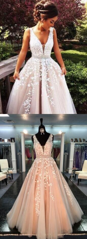 Tulle Lace Prom Dresses, Sexy Deep V Neckline A line Prom Dress, Custom Long Prom Dresses, Cheap 2017 Prom Dresses,wedding dress