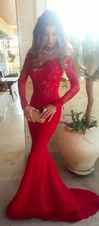 long sleeves prom dress ,mermaid prom dress, elegant prom dress with train ,lace sexy prom dress, 2017 prom dress