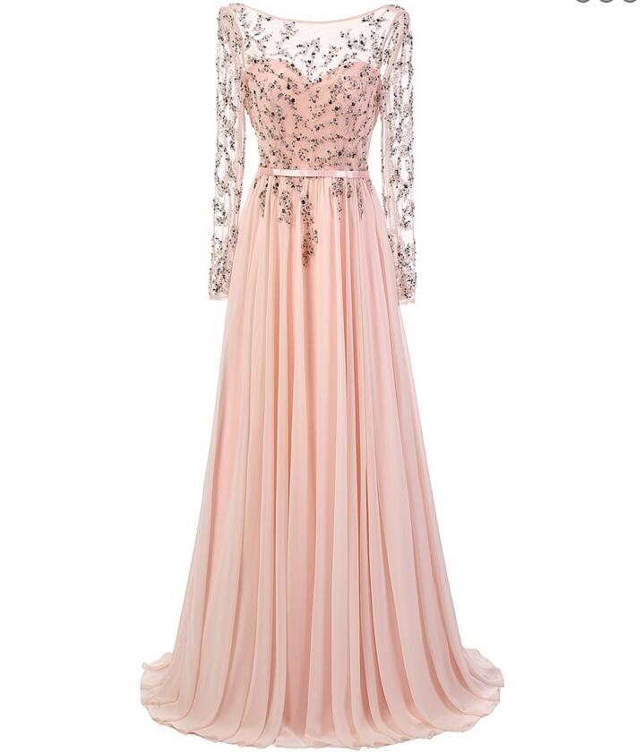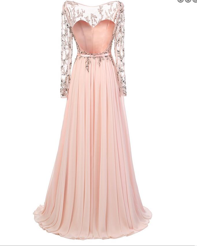 Long sleeve prom dresses, Backless prom dress, Long prom dress, Sexy prom dress, Pink 2017 prom dress
