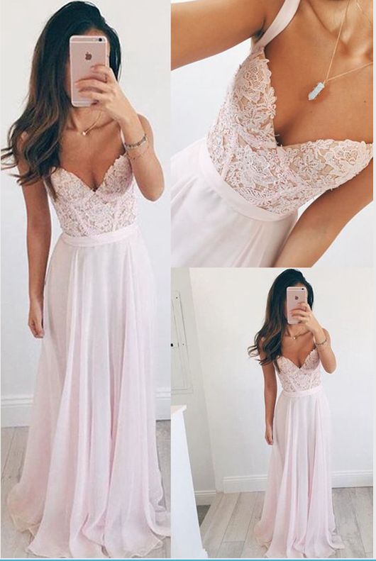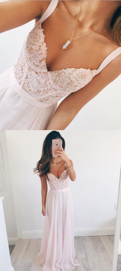 Elegant prom dress,A-line V-neck Long bridesmaid dress,Chiffon Pink Long Prom Dress