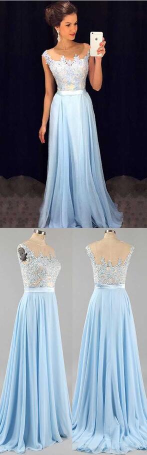 Lace Applique Light Blue Prom Dress , Chiffon Prom Dresses, Cheap A-line Prom Dresses,2017 prom dress