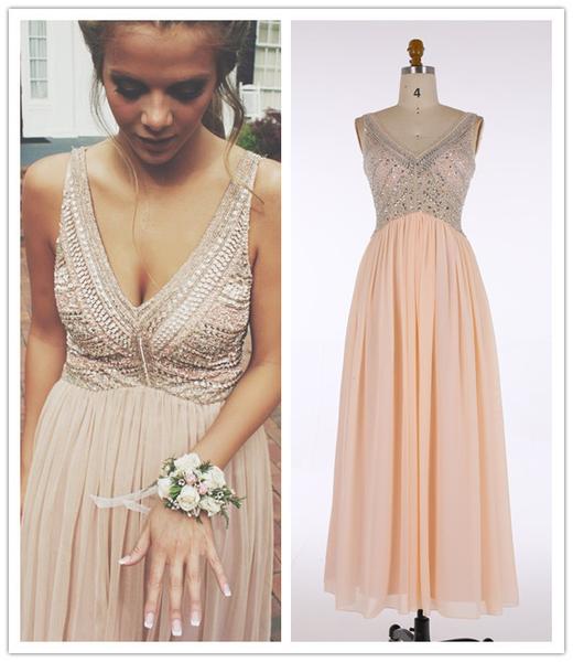 Sexy prom dress,V-Neck Prom Dresses,Long prom/Evening Dress with Beading