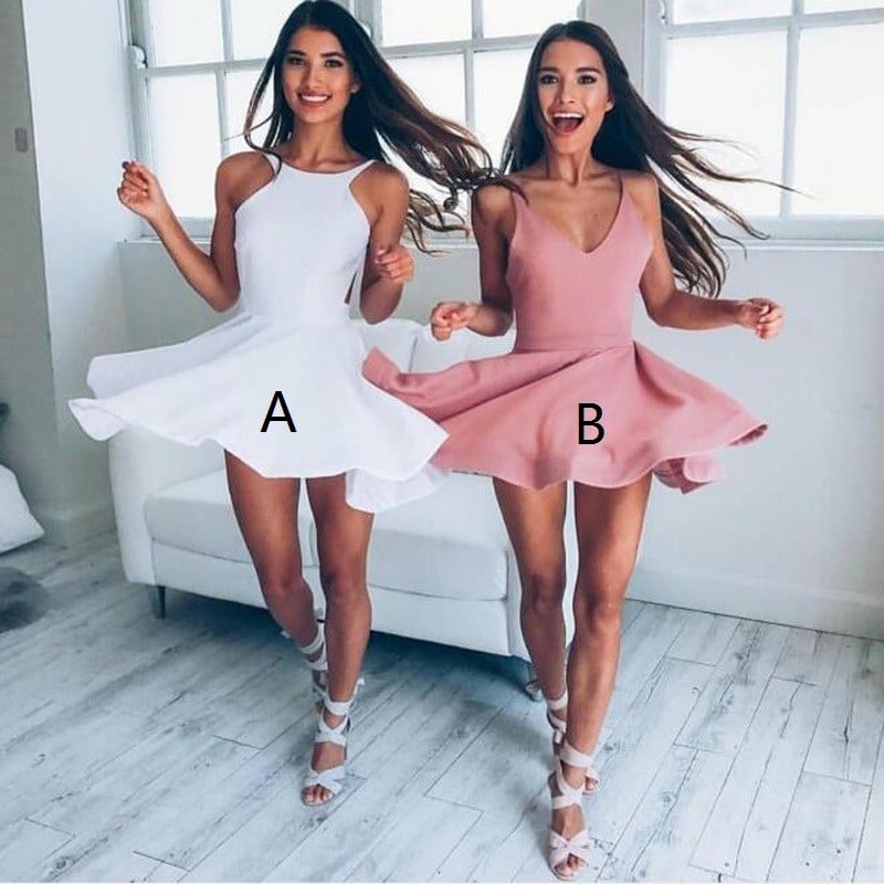 White Short Prom Homecoming Dress , Sleeveless Short Open Back prom dress