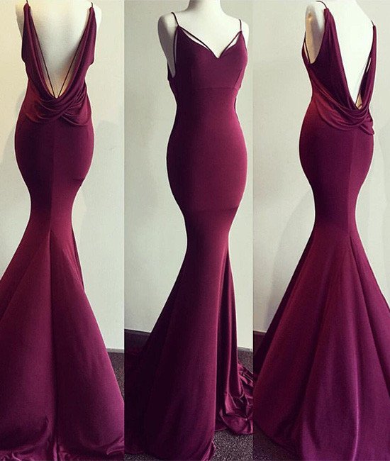 Hot-Sexy Burgundy Mermaid Spaghetti Straps Long Prom Dress