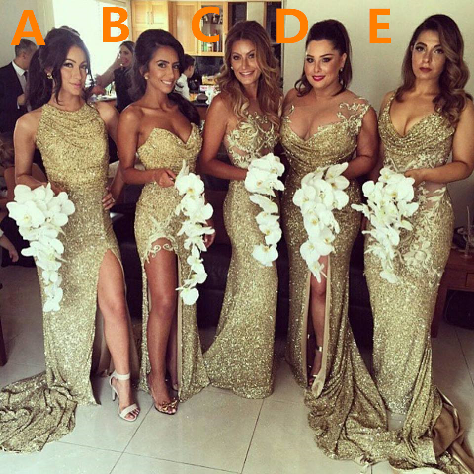 Side Slit Sparkly Sexy Gold Sequins 2017 prom Dresses Wedding Party Dress ,bridesmaid dress