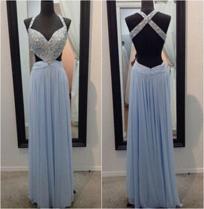 Charming Dusty Blue Prom Dress,2017 Sexy Beading Evening Dress,Backless Chiffon Prom Dress