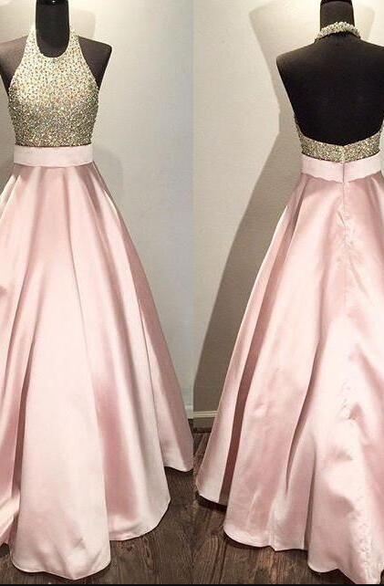 Gorgeous Prom Dress,Halter Beading Evening Dress,Sexy Backless Prom Dress