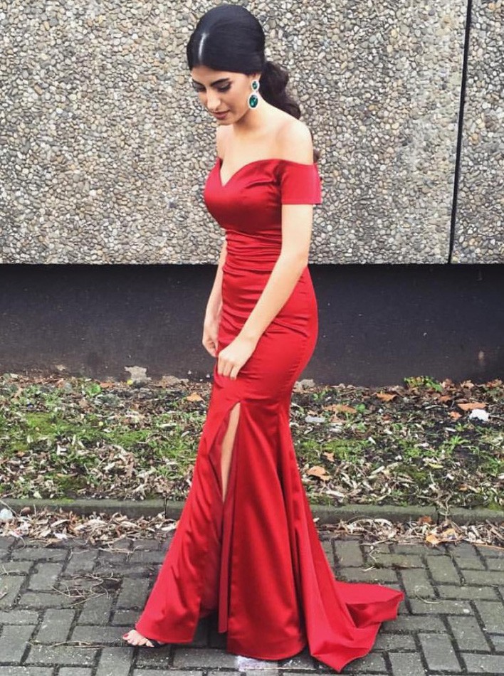 Off The Shoulder Red Mermaid Prom Dress,Prom/Evening Gown Side Slit