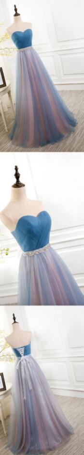 Long Tulle Prom Dress,Open Back Elegant Homecoming Dress,Long Evening Dress