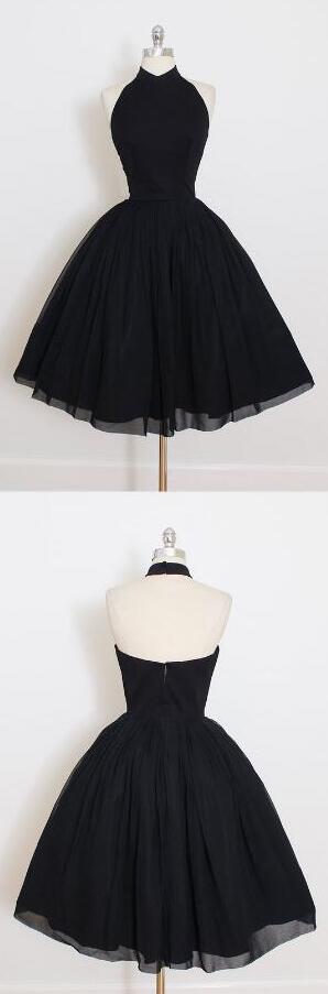Sexy Halter Homecoming Dress,Black Chiffon Prom Dress,Short Mini Party Dress,High Quality Prom Dresses