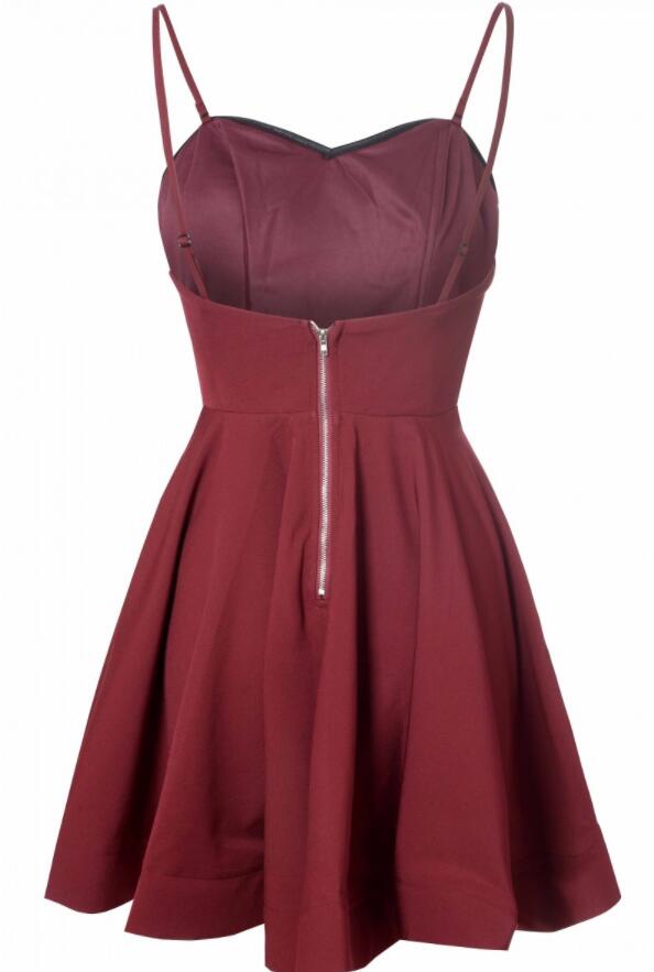 A-Line Spaghetti Straps Satin Homecoming Dress,Cheap Prom Dress,Simple Burgundy Short Homecoming Dress With Pleats