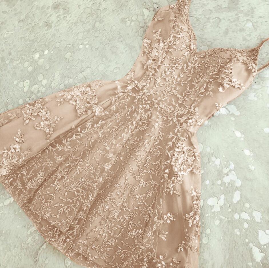 Beauty Glamorous Homecoming Dress,A-Line Spaghetti Straps Short Homecoming Dress with Beading