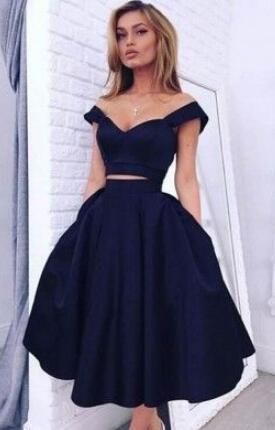 Navy Blue Stain Two Piece Short Prom Homecoming Dress