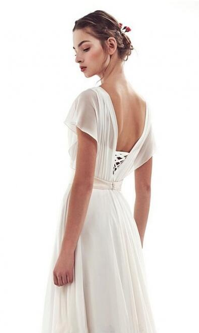 Simple A-line Lace-up Vintage Wedding Dress , Long Prom Dress
