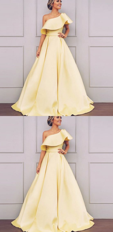Gorgeous One Shoulder A-line Prom Dresses,Satin Formal Dress