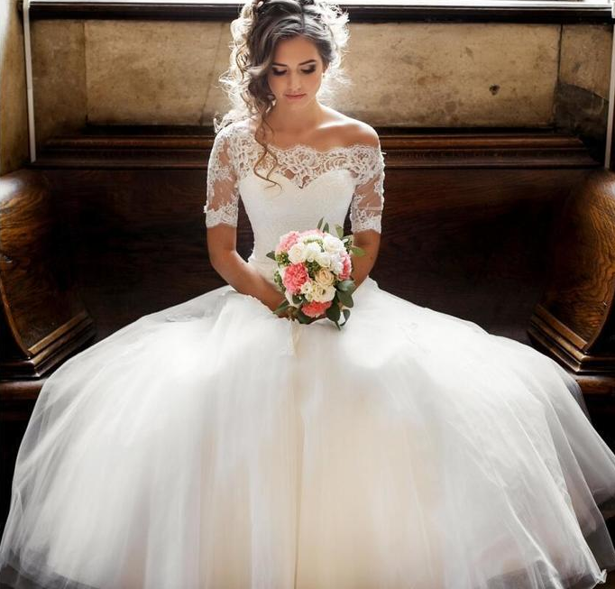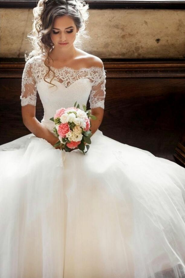 Charming Cap Sleeve Appliques Lace Tulle Wedding Dresses ,Bridal Dress