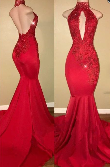 Sexy High Neck Backless Mermaid Prom Dress, Long Evening Dress