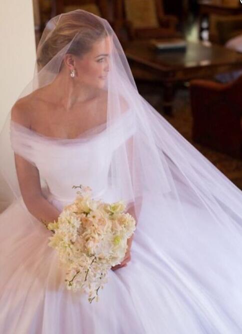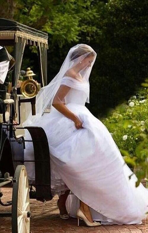 Off the Shoulder Sleeveless Ball Gown Tulle Wedding Dresses Bridal Gowns