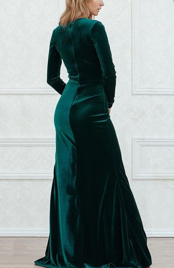 Sexy Mermaid Velvet Dark Green Prom Dresses Side Slit Evening Gowns