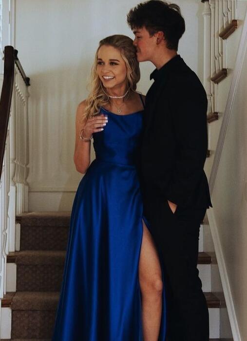 A-Line Scoop Neck Satin Prom Dress With Silt