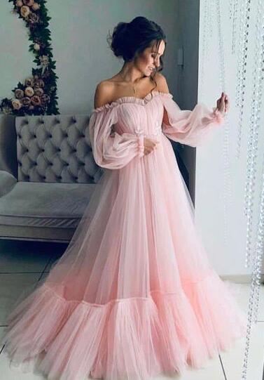 Princess Off Shoulder Strapless Tulle A-Line Prom Dresses