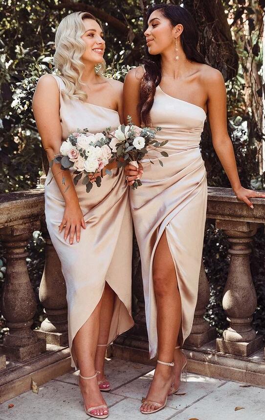 Simple One Shoulder Champagne Bridesmaid Dresses
