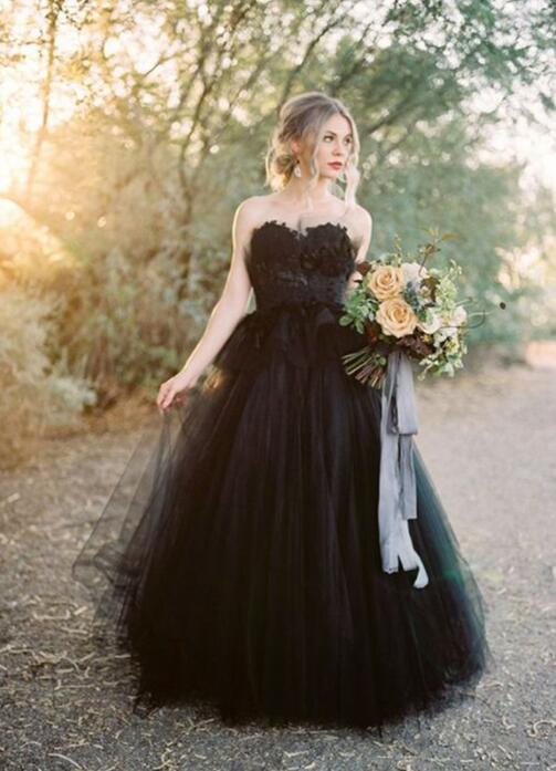 Sweetheart A-Line Black Prom Dress Tulle Formal Dress