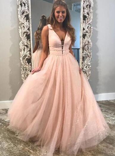 A-Line Pink Rhinestone Long Prom Dress Evening Dress
