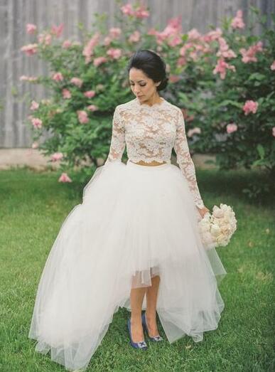 Simple High Low Two Pieces Wedding Dress,Lace Wedding Dresses