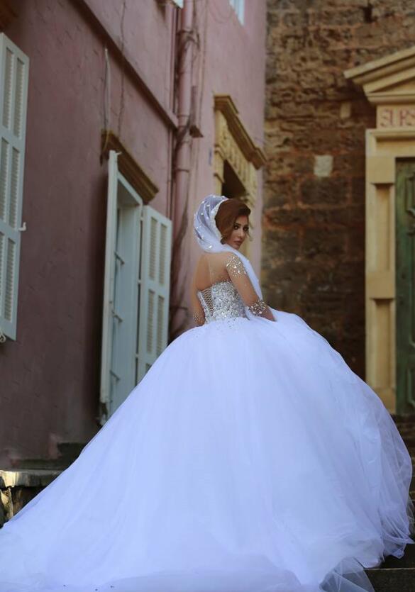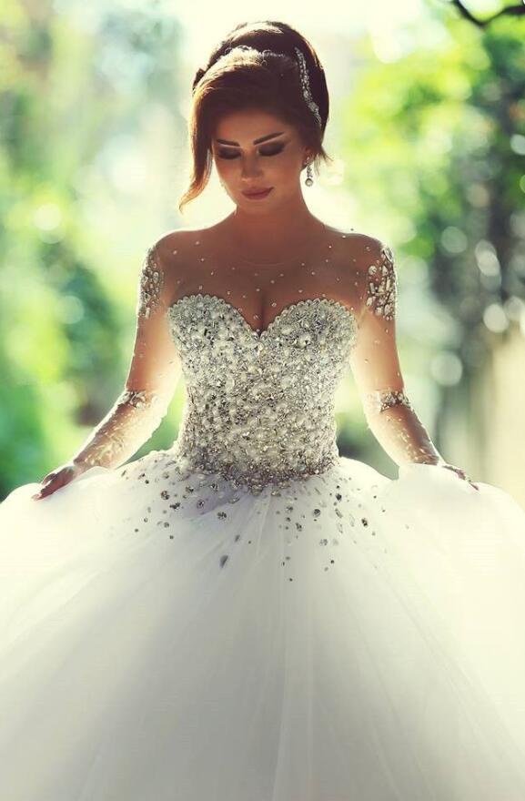 Charming Long Sleeves Ball Gown Wedding Dresses with Beading