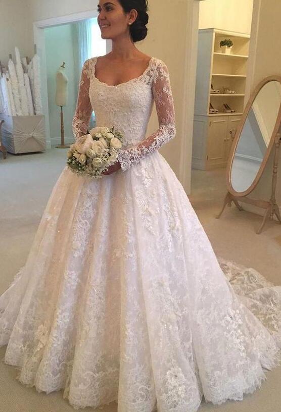 Charming Long Sleeves Mermaid Lace Wedding Dresses