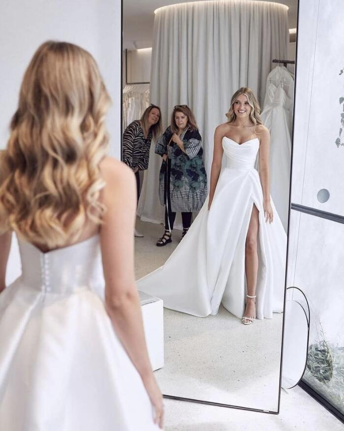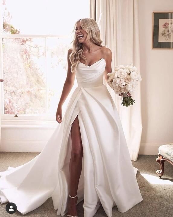Charming Mermaid Ball Gown Strapless Wedding Dresses with Slit
