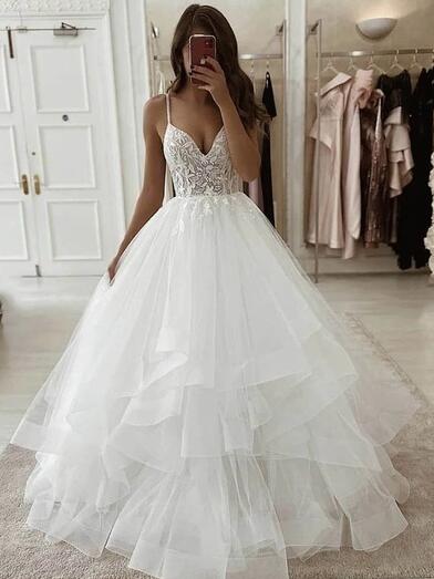 Spaghetti Straps Ball Gown Tulle Wedding Dresses