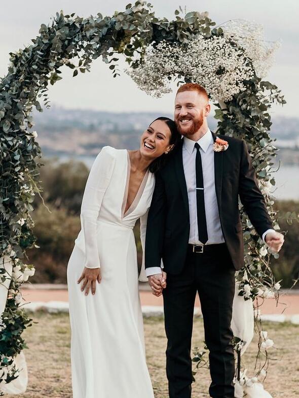 Long Sleeves Vintage Deep V Neck White Wedding Dresses