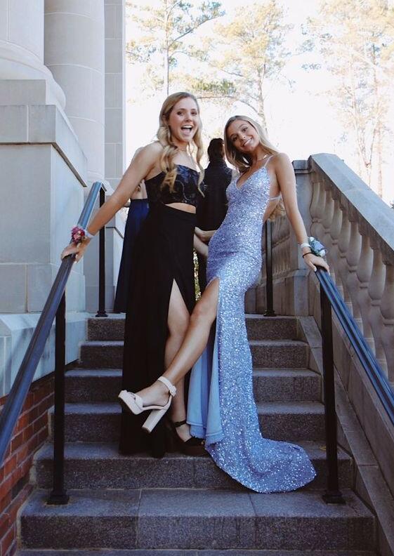 Mermaid V Neck Sequins Prom Dress, Slit Evening Dresses