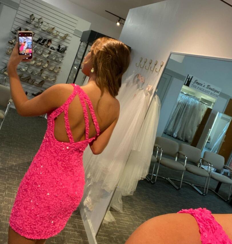 Sexy One Shoulder Pink Sequins Homecoming Dress
