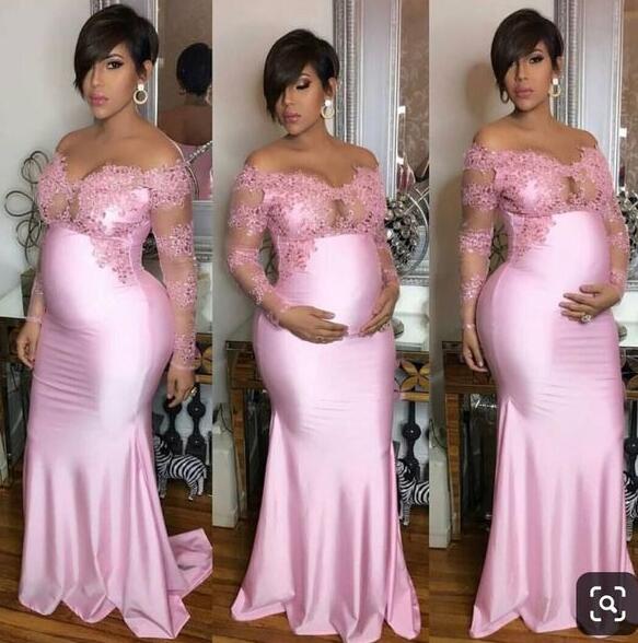 A Line Pregnant Prom Dress, Pink Long Evening Dress