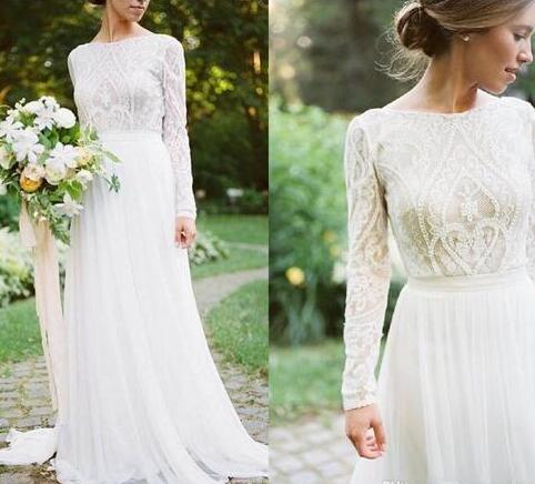 Charming Long Sleeves Wedding Dresses, Modern Lace Bridal Gown