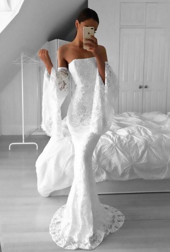 Charming Mermaid White Long Prom Dresses Formal Dress