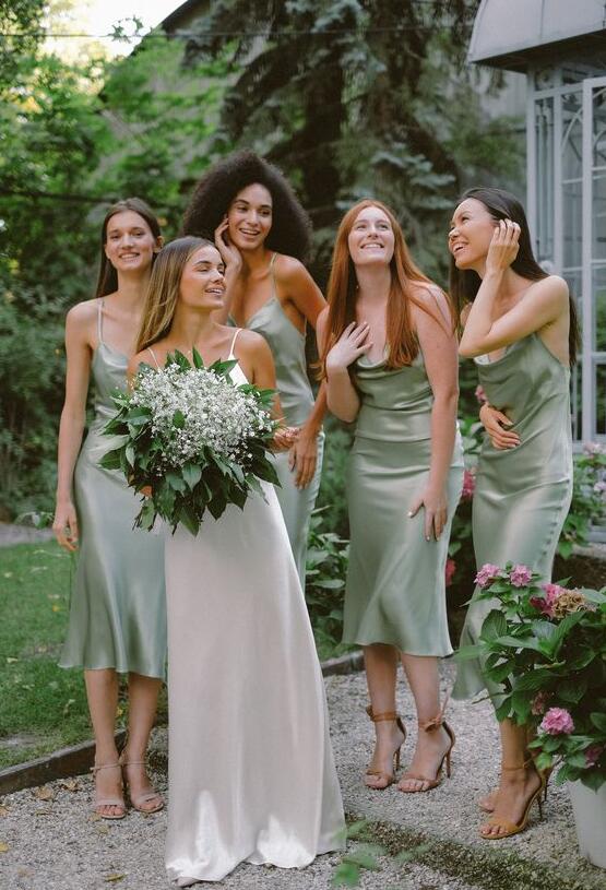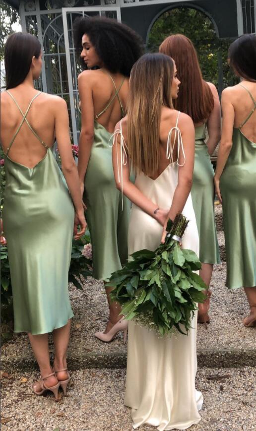 Sheath Cowl Neck Silk Tea Length Bridesmaid Dresses Under 100