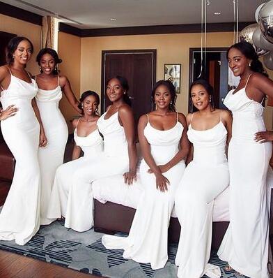 Mermaid Cowl Neck White Bridesmaid Dresses for Women