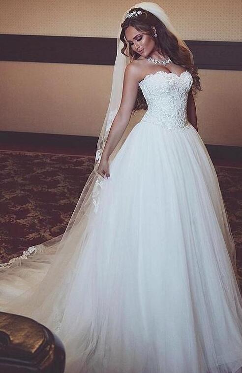 Sweetheart Strapless Ivory Tulle Lace Wedding Dresses