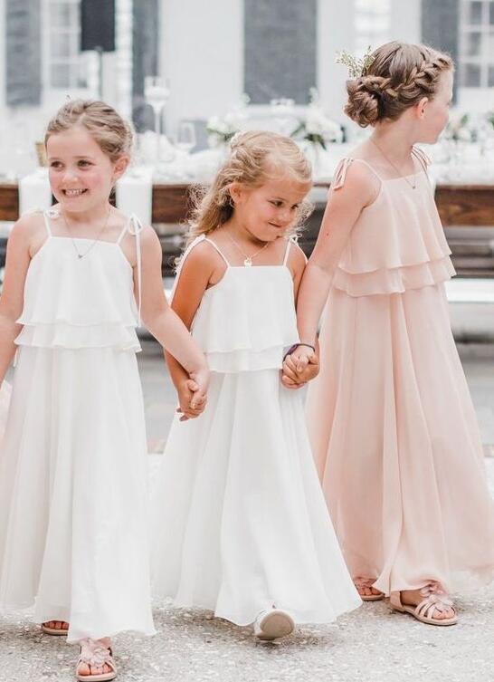 Spaghetti Straps A Line White Chiffon Flower Girl Dress