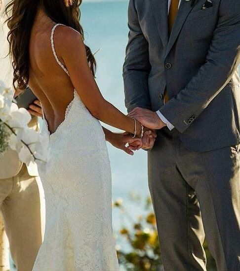 Spaghetti Straps Backless Ivory Lace Wedding Dress Beach Bridal Gown